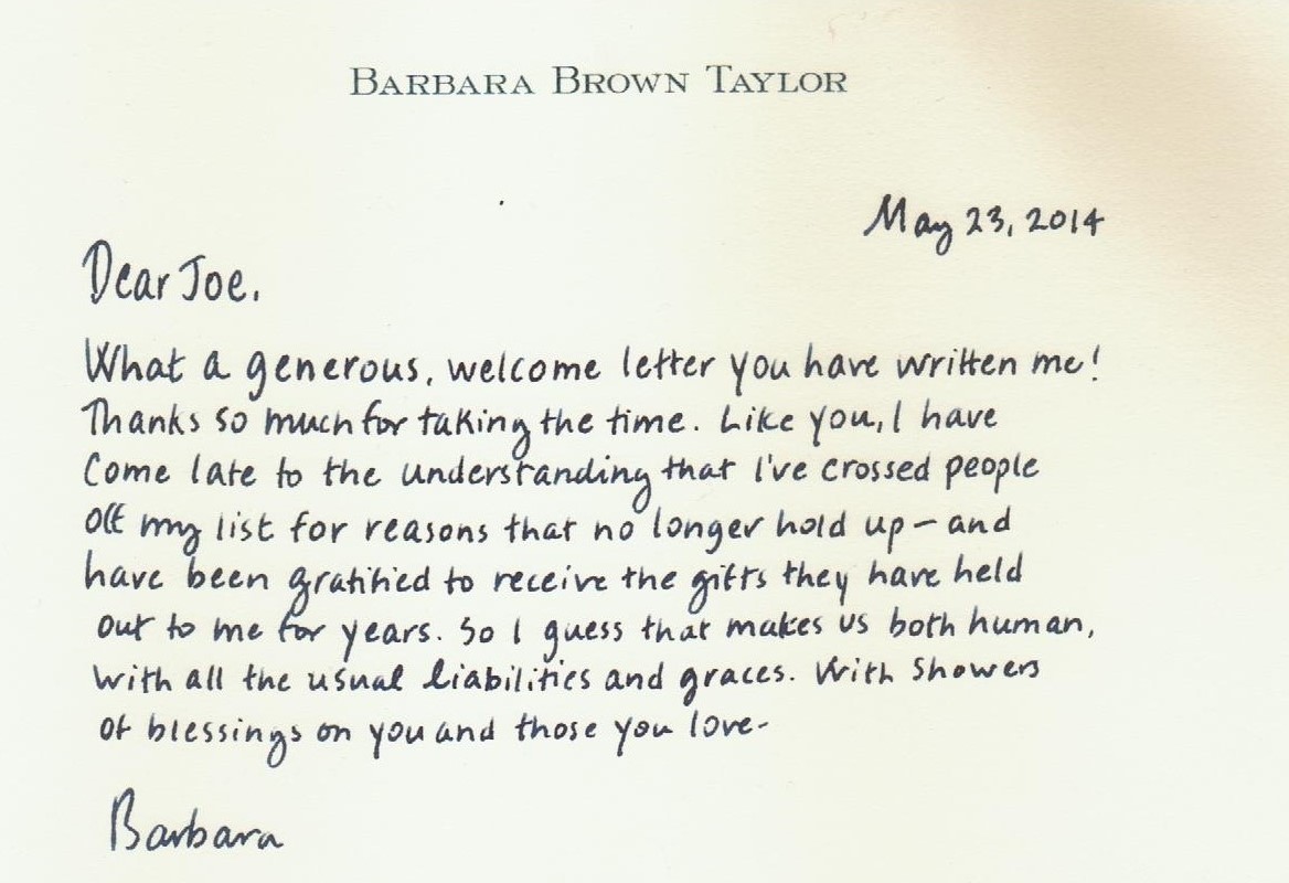 (Much like I do with Annie Dillard.) I was so impressed with the prose and spiritual depth of her writings that I wrote her a note asking her to forgive me for ignoring her years due to her reputation as a liberal. Understand that a “Liberal” in the Southern Baptist community means “you are not a fundamentalist and tea party Republican.” In the classical sense of theological liberalism, she is not a liberal.