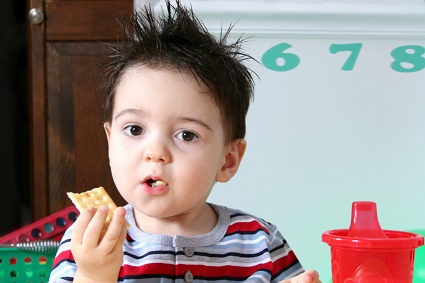 If a small child were to walk into a room where you were sitting with some fresh-baked chocolate chip cookies and they had two fists full of saltine crackers, how long would it take that little crumb-snatcher to drop the crackers?