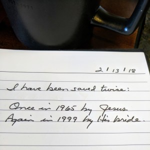 But another reason I have a problem with kicking the church to the curb is more personal. I wrote in my journal this morning after doing my Lectio on 1 Timothy 3:14-16 what you see in the photo: