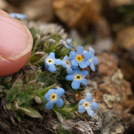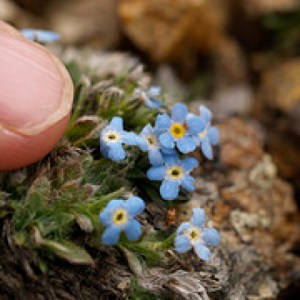 They come from the genus Myosotis, which in Greek means, “mouse ear.” In a German legend, God named all the plants when a tiny unnamed one cried out, “Forget-me-not, O Lord!” God replied, “That shall be your name.” Because the Alpine forget-me-not flourishes on the tundra where the winter wind and snow blow with a fierce intensity, they never grow larger than the top button on your shirt.