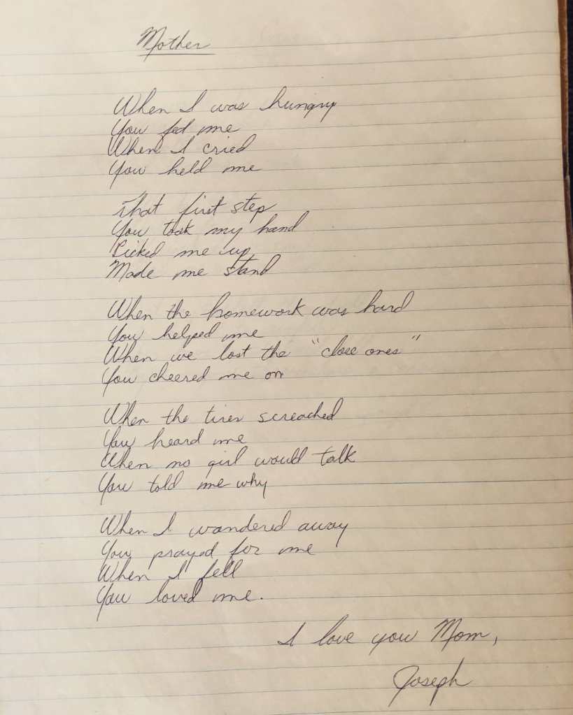 But at the ripe old age of nineteen, I wrote a poem for my mom. I’ll end with it.