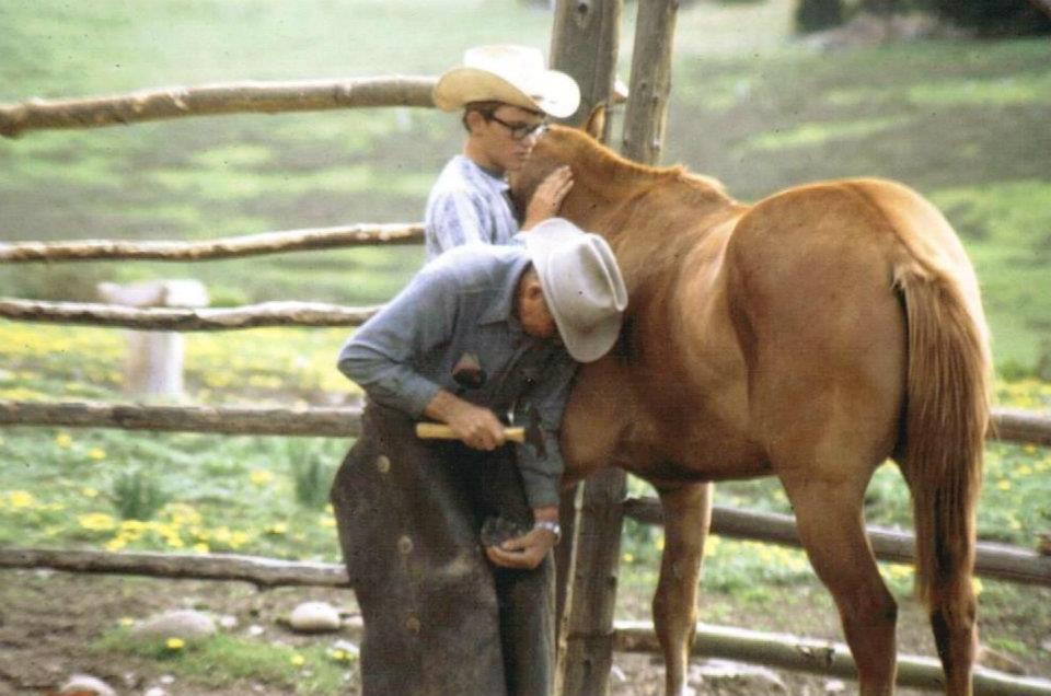 “One time the old man decided to shoe one of the horses. It was a two-year-old sorrel and a little jumpy. I held the reins while he locked the front hoof between his knees and started working on the hoof and eventually the colt started leaning on him.